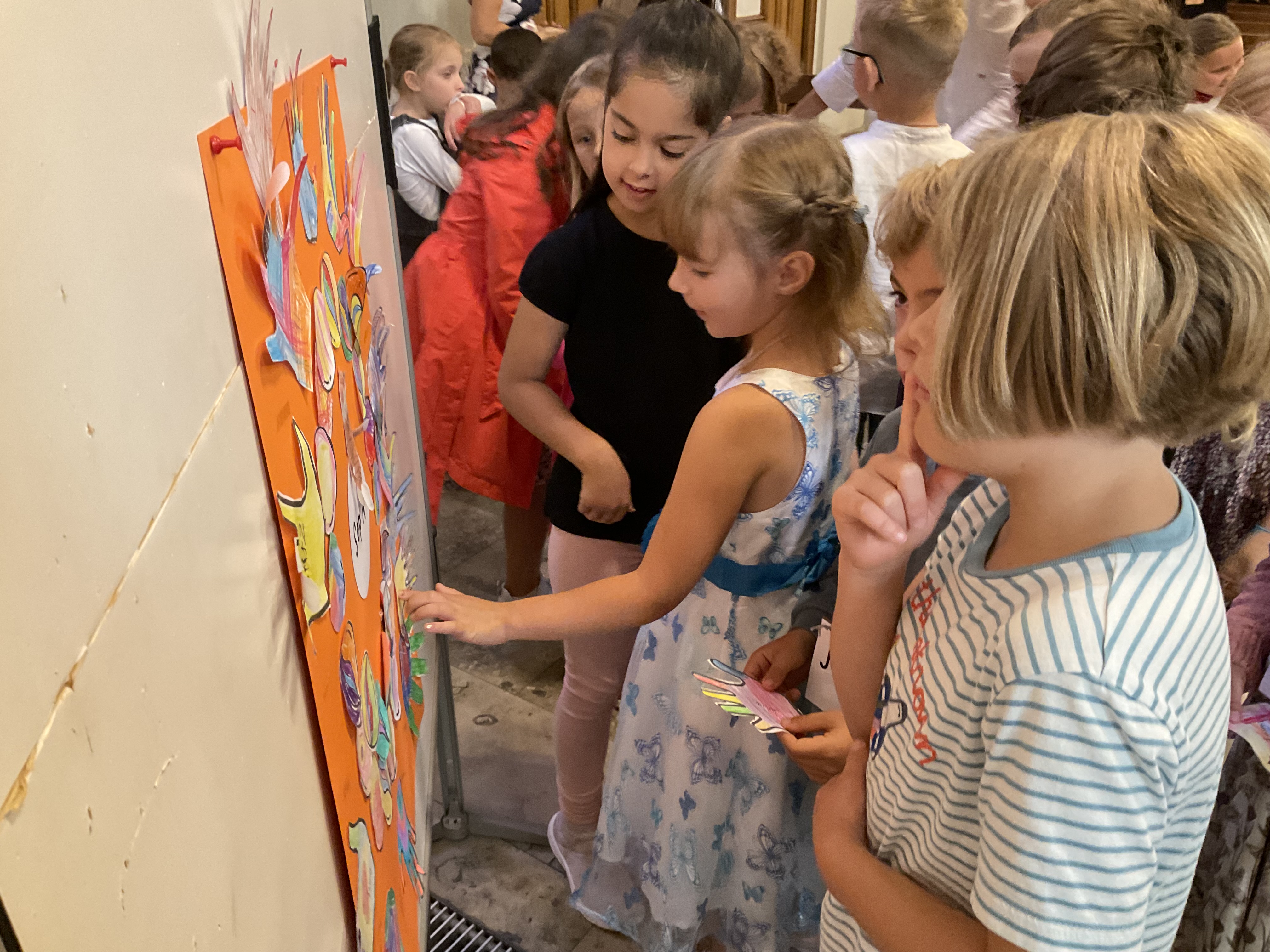 Nachdem alle Kunstwerke abgegeben worden waren, fand in der Schule eine geheime Abstimmung statt. Über eine Wahlurne wählten die Kinder das DemokraTier, das unsere Schule beim weiteren Wettbewerb der Stadt vertreten wird.